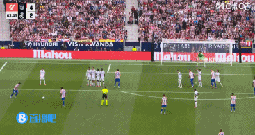 直播吧09月27日訊 馬競vs皇馬第63分鐘,阿爾瓦雷斯任意球轟十分角!單場梅開二度!2輪轟5球!馬競4-2領(lǐng)先皇馬!